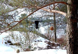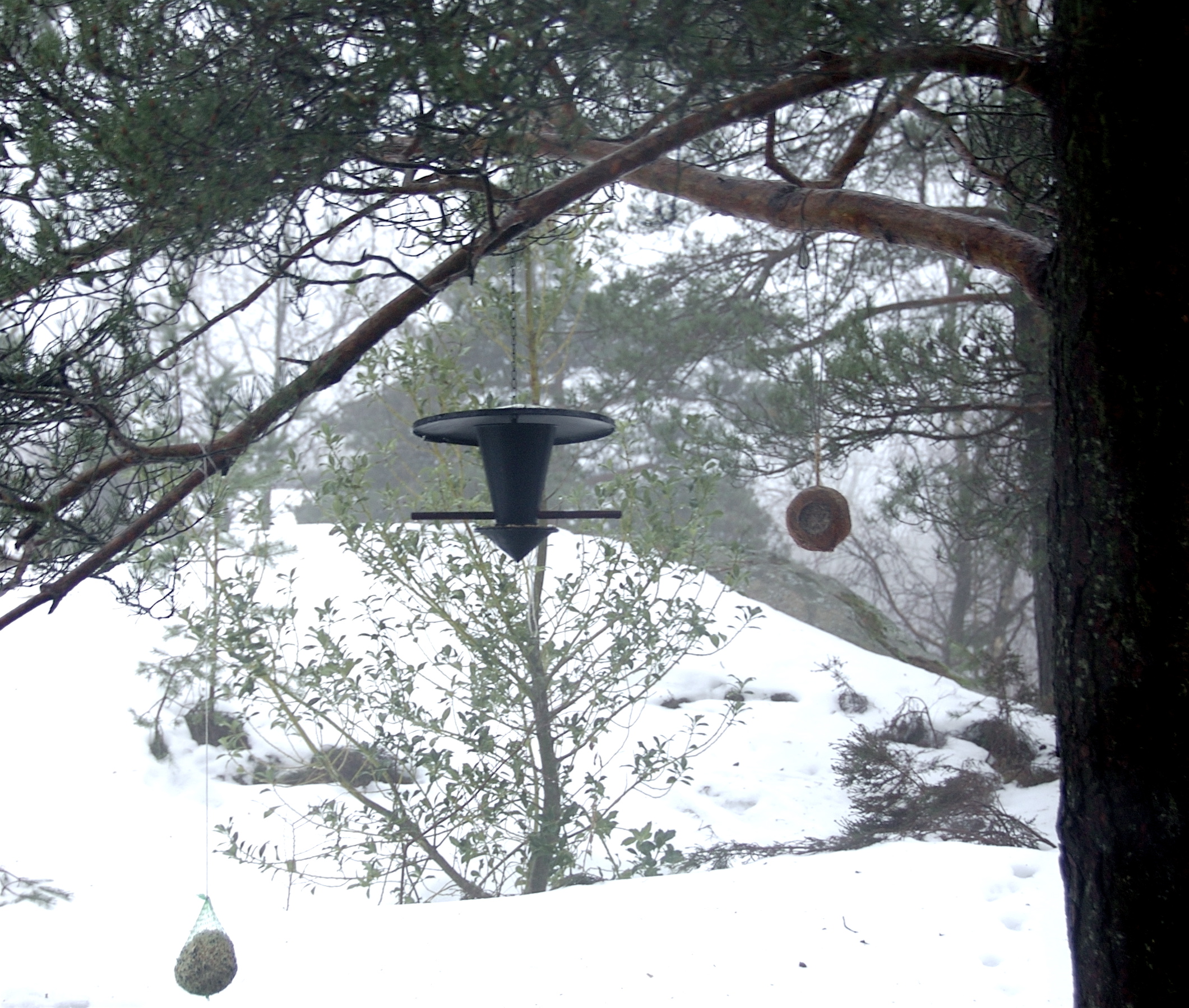 Vi har vært nedsnødd og de siste dagene har jeg vært temmelig nedsnødd selv, men med gode hjelpere på jobben og apotekets alle hånde remedier ser det nå ut til å livne til både slik og sånn. Kollegene har laget en verneplan for sjefen, la ho få fred og send henne hjem i tide. Apoteket har utstyrt meg med halstabletter, hodepinetabletter og Bergensk brystbalsam. Det siste var jeg litt skeptisk til fordi man er ikke i kjørbarstand etter å ha inntatt sorten, men etter å ha testet sakene er jeg overbevist om at dette er godt for både kropp og sjel. I går regnet det i strie strømmer her. Jeg stod i døren og tok et stemningsbilde av meisebollene som dryppet av vann – ikke særlig lekkert…