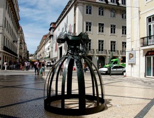 En bue som fører til plassen og en hel buegang, som på en varm ettermiddag er kjølig og lokker meg til å bli, akkurat som Prado – glemme tanken på å reise fra Lisboa.