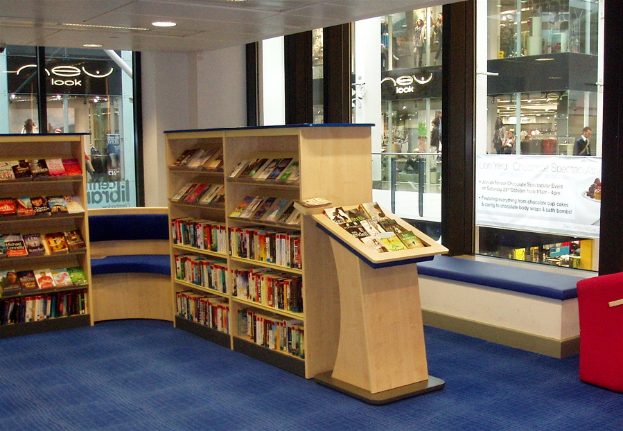 Da er det anderledes med Cambridge Public Library! Et bibliotek midt inne i et travelt handlesenter, stort og innbydende – en oase for folket!