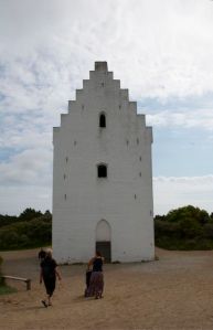 I sommer har min kjære og jeg kjørt bil til noen av våre ønskesteder. Jeg har alltid ønsket å reise til Skagen i Danmark og selv om jeg har vært mye i dette deilige landet, så kan jeg ikke huske at jeg har vært der. I år ble det virkelig og nytelsen ble desto bedre med fint vær! Jeg har hørt om Den Tilsandete kirke, men det var først i år at jeg fikk sett den, helt utrolig at sanden rett og slett overtok både kirke og kirkegård. Det var i 1795 at folket på stedet ga opp å grave seg inn i kirken hver gang de skulle ha gudstjeneste eller andre kikrelige handlinger og de fikk tillatelse av kongen til å legge ned kirken. Det er bare tårnet som står igjen som et minnesmerke. De av oss som leser nok creepy stories, kan nok tenke seg andre løsninger enn å bruke steinen til andre byggverk. Tenk hvilke skrekkhistorier man kunne pønske ut hvis kirken hadde bare blitt gravd ned i all sin velde. Slik ser det ut nå: