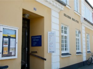 Etter Grenen – ja, så ble det Skagen by. Koselig å gå omkring i gatene, se på folkelivet og legge merke til tilbudene. Jeg har tdiligere gjerne besøkt bibliotek i andre byer, men denne ferien ble det bar dette bildet og til og med fra utsiden! Jeg som alltid pleier å gå inn og spørre etter noe helt absurd bare for å se hvordan de tar det… (som regel går det veldig fint!)
