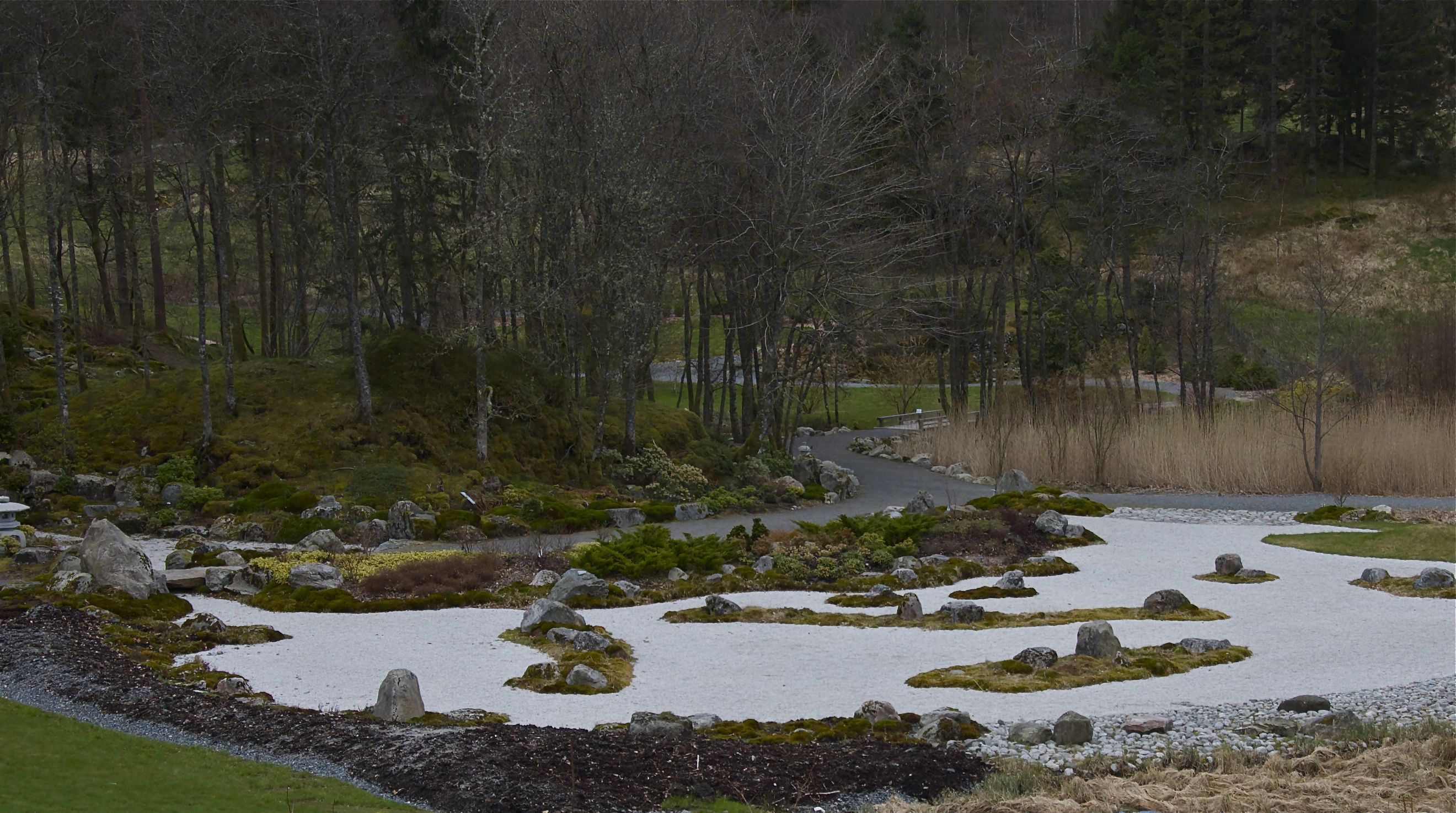 Dagens tur inneholdt både natur, kultur og historie, for turen gikk til Arboretet på Milde og Hordamuseet. Vi hadde fått en invitasjon til utstillingsåpning på Hordamuseet og når vi først var på den kanten av byen var det naturlig å kombinere dette med en sving innom Arboretet. Vi måtte jo sjekke hvor langt våren hadde kommet litt lenger sør for oss. Endelig var det en dag med sol i vårt regnfulle distrikt og vi kjørte med en viss våryrhet til Milde, men da vi steg ut av bilen var det godt med både dynejakke, skjerf og lue. Vi startet i den japanske hagen.