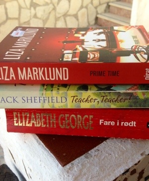 Jeg har delvis sukket meg gjennom Den hemmelige historien som Lines bibliotek og andre skal blogge om i slutten av måneden, mens husbonden har ledd høylytt av flere av bøkene han har lest denne sommeren. Da han avsluttet Teacher, Teacher av Jack Sheffield var jeg raskt ute og snappet til meg boken. Han hadde rett, historien om Jack Sheffield som kommer til en landsby i North Yorkshire som rektor på barneskolen er en herlig, rørende og morsom beretning om livet på skolen og i landsbyen. Det er som å lese James Herriot og se Med hjartet på rette staden samtidig. Boka var ikke overhendig lang så jeg gikk snart over til det mer kriminelle med Elisabeth George og boka Fare i rødt. Jeg har lest uendelig mange av hennes bøker og så en dag orket jeg ikke mer av hverken Barbara Havers og Thomas Lynley, men det er altså utrolig hva litt avstand og ikke minst sommertempo kan gjøre med interessen. Det var stas å lese boka, selv om Lynley befinner seg i den dypeste sorg etter å ha mistet sin elskede Helen i et meningsløst drap. Havers er den lurvete betjenten med et hjerte av gull og sammen finner de ut av flokene. Husbonden har på ett eller annet vis vært utrolig heldig med bokvalget denne ferien for nå leser han Ferdaminne frå sumaren 1860 og forsyne meg ler han ikke godt over denne også! Kanskje en kjempeflink bibliotekar har gitt ham noen råd? Eg berre spyr????? Jeg gikk over til Liza Marklund og Prime time. Henne har jeg aldri lest noe av så dette var et nytt bekjenskap som jeg nok skal utforske videre. Hennes helt er Annika Bengtzon journalist med et, selvsagt, turbulent privatliv men superdyktig i jobben. Jeg må si at det er bra å lese om flinke damer, men må de ha det så trøblete på hjemmebanen for å virke virkelige? Jaja, damen kommer seg igjennom det meste og det er spennende nok til å lese på stranden, så da klager jeg ikke. Ferdaminne får jeg nok ikke lest i denne ferien for husbonden sier at den må leses langsomt….. Lurer på hvorfor?