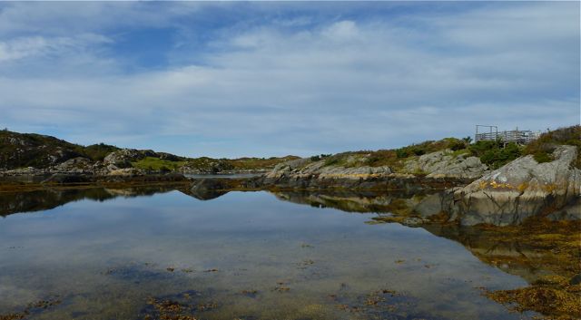 Oppildnet av fredagens tur fant vi ut at søndag skulle vi virkelig ha en lengre tur. Vi kjørte til Lyngheisenteret, ytterst på Lygra og gikk i nydelig kystlandskap – både på og utenfor stien.