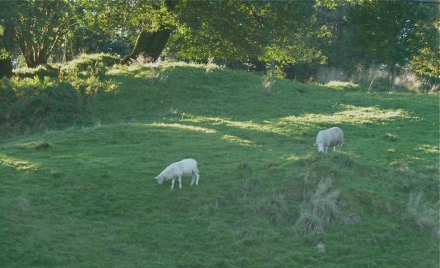 Det er jo sauer på Lygra og, ganske mange til og med, men det er stort sett utegangere og ikke særlig interessert i folk. På lang avstand ser de jo ganske flotte ut – synes jeg.