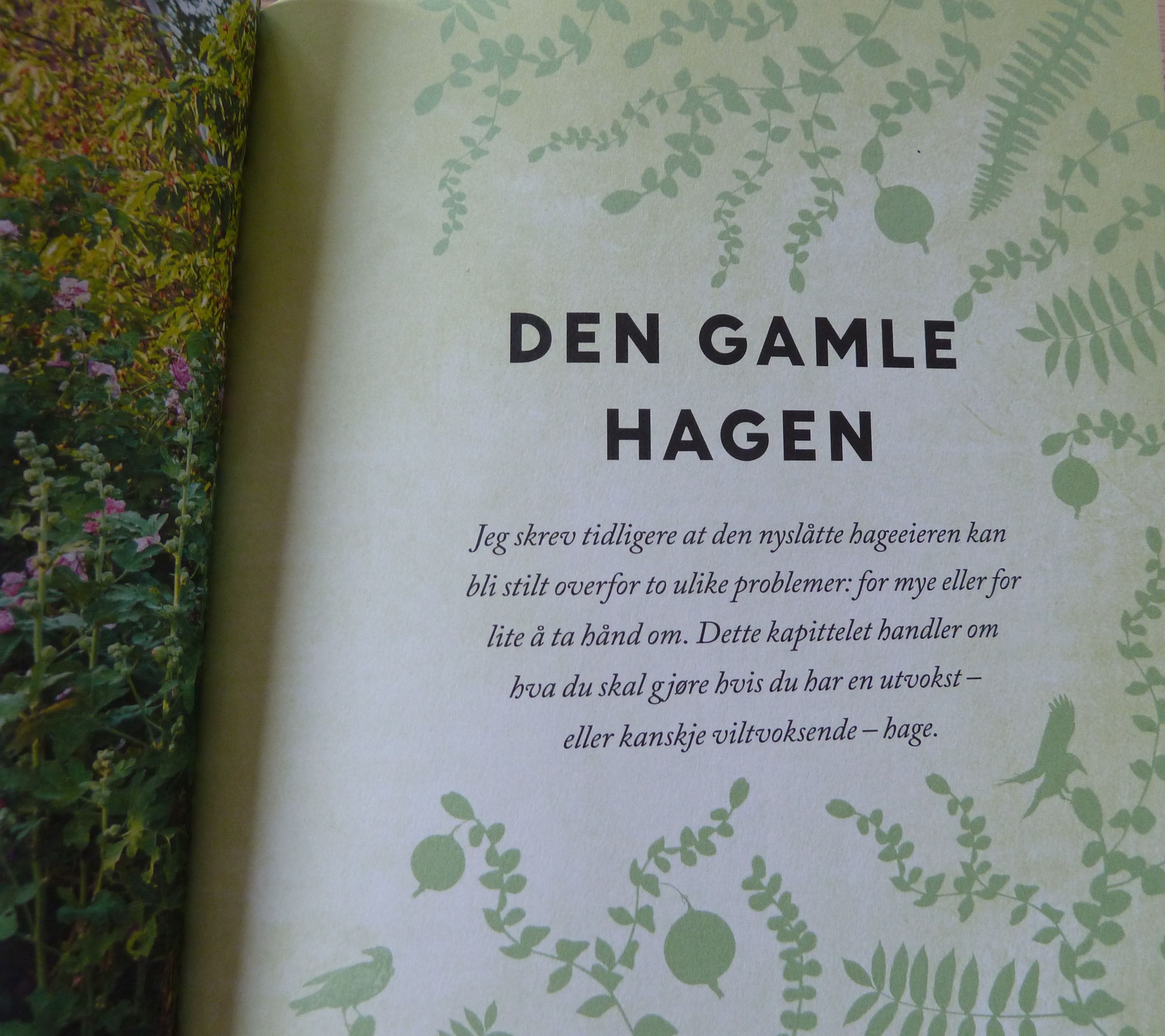 Denne boka tror jeg faktisk kan få meg opp av sofaen fordi forfatteren har en hagefilosofi som han oppsummerer i noen innledende punkt. Disse faller i særdeles god smak hos meg : Ta vare på det som kommer opp, hvis det ikke er for stygt. Eller dette: Når det blir for kjedelig med hage, ta en pause og gjør noe annet. Toppers!