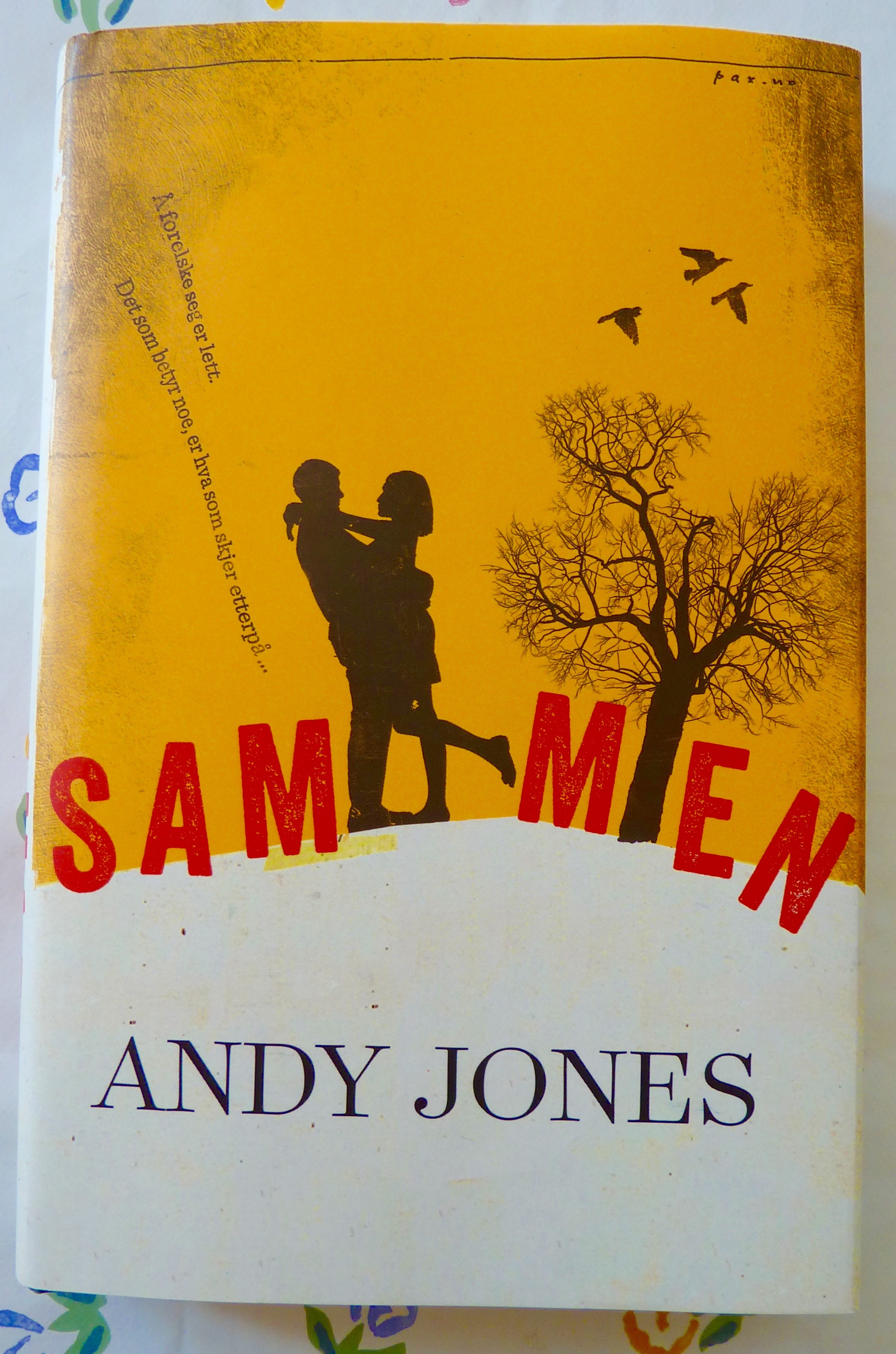 P1040543Da del en av ferien var over kom jeg hjem til denne boka av Andy Jones og kastet meg over den. Sammen er debutromanen hans og den er faktisk slik at jeg skulle ønske han hadde flere manus på lager så vi kunne få litt mer av samme slaget fort. Mens jeg leste boka dukket minner av andre romaner opp i hodet mitt, litt av Nick Hornby og  litt av David Klass, forfattere som på sitt beste har gitt meg strålende, lengevarende godfølelse.