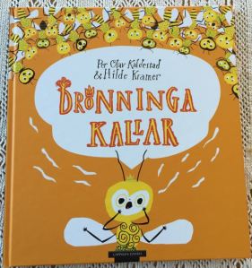 Den har fått den dramatiske tittelen Dronninga kallar og for meg som var på lanseringen på Litteraturhuset i Bergen, var det nyttig å få vite at dronningbien synger/tuter når hun skal styrke posisjonen sin i kuben. Det var Hilde Kramer som først fikk ideen til boka, men det var etter at Kaldestad og Kramer hadde laget boka Med kråkenebb og kråkeføter i 2010. Dette samarbeidet har ført til en ny bok som har et aktuelt tema uten at ccd ( colony collapse disorder) er direkte nevnt. Teksten er dikt i ulike sjangere og det er frydefullt, for barn og voksne trenger et godt tilfang med nye, friske og ferske dikt å glede seg over. Dronninga aner at noe forferdelig er i ferd med å skje, hun roper på biene, men får ikke noe svar. Mens hun venter på respons tenker hun tilbake på sine første dager som dronningbie, det er lyst og lett og livet er en dans fra blomst til blomst før arbeidet innhenter henne. Vi får en beskrivelse om arbeidet i kuben der alle har sin oppgave, med arbeidere som er hentere, voktere, speidere, ryddere og pleiere. Det er fellesskapet som står i fokus og alle er like, selv om forfatteren har klart å argumentere seg fram til en viss indiviualisering i illustrasjonen av de ulike gruppene arbeidere. For leseren er dette et fint grep som gjør illustrasjonen mer interessant når det skal leses høyt og bildet skal granskes.Farene truer, det er gift i luften og arbeidere dør, dronninga må flykte ut av kuben, ta med seg de friske arbeiderne og finne et nytt sted å leve. Dronningens mantra kommer igjen: Eg held liv i flokken, tenkjer ho og flokken held liv i meg. Det er fellesskapet som teller, individet har liten betydning. Det er dystert og skummelt en periode, men for alle sarte sjeler er det en optimistisk grønn stripe i det fjerne. Illustrasjonene er umiskjennelig Kramerske, detaljrike og hun bruker mulighetene i diktene til å danse rundt på hele oppslaget. Det veksles mellom fantasiblomster og stiliserte blomster slik at de faktisk er gjenkjennelig for barn som har levd noen år. Det er diktene som skaper framdrift, men det er et godt samspill mellom tekst og bilde og på lanseringen sa forfatteren ganske beskjedent at det var nok illustratøren som ledet an og han fulgte med. Illustrasjoner og dikt sirkler seg fint rundt hverandre og jeg vil tro at boken kan leses på ulike nivå av alder og forståelse, men kanskje barn i de første klassene på grunnskolen vil ha mest glede av den sammen med voksne.