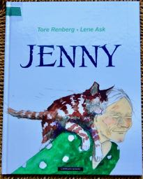 Vennskap på tvers av generasjoner – er det en sjanger som heter, men her er det en ”dødsgammel” dame med katt, cowboyhatt og blåserør som er hovedpersonen i denne bildeboken. Hun ser surt ned på barna som leker og hun blåser erter på dem når de går forbi. Jenny går i begravelser hver uke : ”alle hun kjente drev og døde”. Hun blåser erter på en gutt og jente på vei til skolen, de på sin side overfaller henne. De får en liten samtale i gang og vi får en forståelse av at Jenny synes det ser gøy ut å være barn og derfor er hun sur. Teksten på siste side: Hun het Jenny. Hun kom fra en annen tid. Hun var dødsgammel. Jenny kunne virke sur, men hun var helt okei. Hun så ut som en rosin. Det gjør du også en dag.