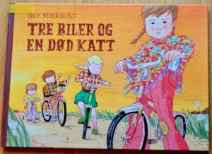 Katten Hampus blir kjørt ned av en bil og dør, jeg-fortelleren og vennene hennes prøver å oppklare hvem som har kjørt på katten. På øya er det bare tre biler og barna konfronterer alle bileierne. Det viser seg at det er taxi-Laila som har truffet Hampus og han har dødd av skadene. Jeg-fortelleren sørger, alt er trist. Det er begravelse for Hampus, alle kommer men taxi-Laila står utenfor og tør ikke være med. Jeg-fortelleren er sint på henne som kjørte ned katten hennes, det er ikke snakk om noen tilgivelse her nei. Illustrasjonene er annerledes enn de vi kjenner fra Gry Moursunds tidligere bøker, dette er retro både i klær, interiør og musikk. Det er gjennomført og stilig gjort, men jeg spør meg om barn som leser denne boka vil oppfatte dette. Forlaget plasserer boka i aldersgruppen 6-9 år og kanskje er det riktig for boka har en slags åpen slutt – skal hun som mistet kattet virkelig gråte og sørge i måneder og år? VG har omtalt boka og savner en mer forsonende slutt, det gjør også jeg for denne boka er av et slikt format at den lett leses til yngre barn enn 6 år – og hva da?