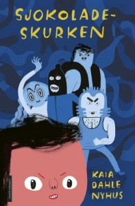Kaia Dahle Nyhus har laget bildeboken Sjokoladeskurken, en bok om en liten gutt som har stjålet sjokolade. Han har tydeligvis gjort dette noen ganger for snart er skuffen full. Han er redd for at faren skal oppdage det og han har vanskelig for å sovne. Han hører noen krafse på vinduet, han åpner og utenfor står en skurk. Skurken ber han bli med ham, for han er en av dem nå… De kommer til et møte med mange mennesker, der skurker av alle slag er samlet. De forteller om hendene sine som stjeler, svindler, nasker, terroriserer og myrder. Det er ingen hender som passer til oppgaven «stemmen» vil de skal utføre, helt til de kommer til gutten, han er et barn med små hender. Disse hendene kan stemmen/mafiabossen bruke til å hente opp en nøkkel. Gutten klarer dette og får spørsmål om hva han ønsker seg, men ingenting av det mafiabossen foreslår vil han ha. Han blir kjørt hjem, legger seg og sovner. Når han våkner er alt som før, nei, forresten skapet er fullt av sjokoladepenger
